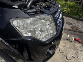 パジェロのヘッドライトが黄色く汚れてきたので今回はポリッシャーを使って磨いてみました。