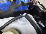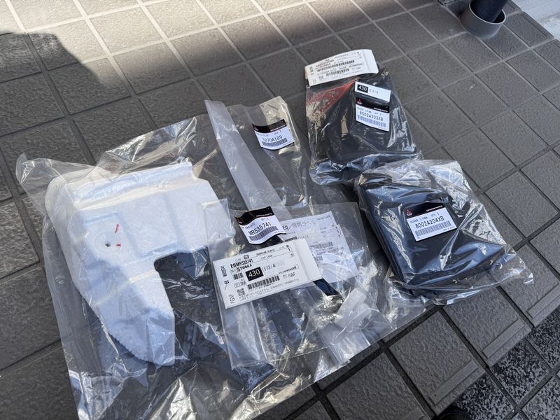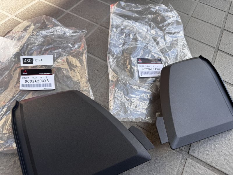 まずインパネのサイドパネルの爪が折れていたため左右ともパネルごと交換。ラジエーター液リザーバータンクのキャップ内のパッキン劣化のためキャップ交換。更にフットレスト取り付け時に外していたカーペット下のパッドをシワ解消のため再取付けしました。発泡スチロール製のため必要な部分のみ(殆どカット)使用しています。
