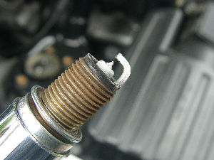 外したプラグです。電極が全て白く焼けています。